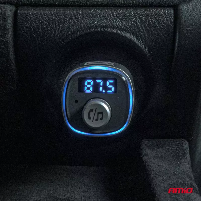 Émetteur FM avec module Bluetooth et kit mains libres, permettant la lecture audio depuis téléphone, clé USB ou carte microSD (MP3)