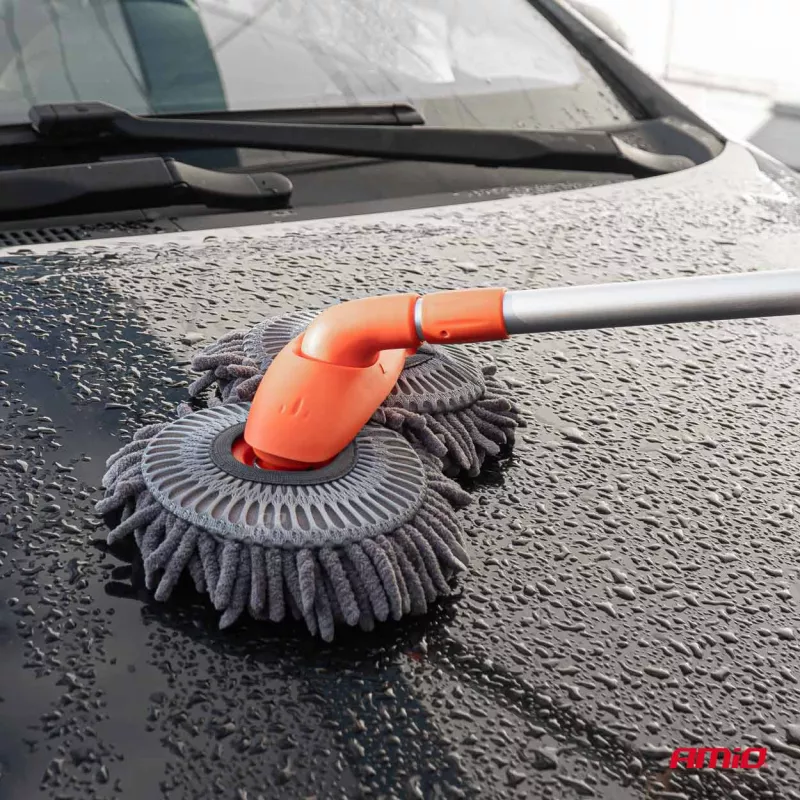 Brosse télescopique rotative avec microfibre premium (29x15 cm) pour un nettoyage rapide et sûr des véhicules