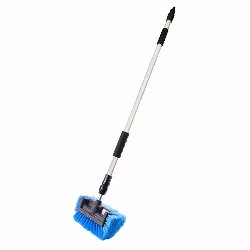La brosse télescopique à flux est conçue pour nettoyer efficacement les surfaces extérieures de véhicules et panneaux photovoltaïques