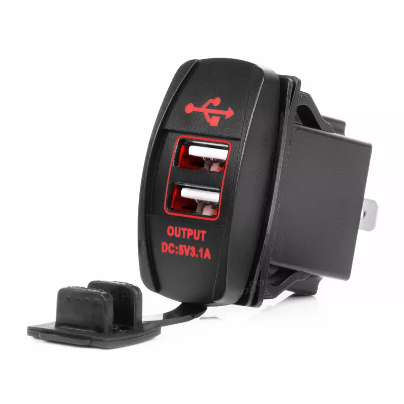 Chargeur carré étanche avec design moderne, idéal pour voitures, bateaux et véhicules 12/24V