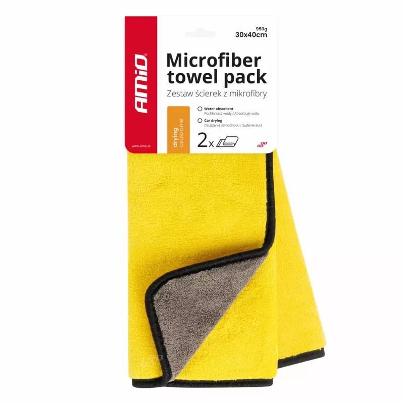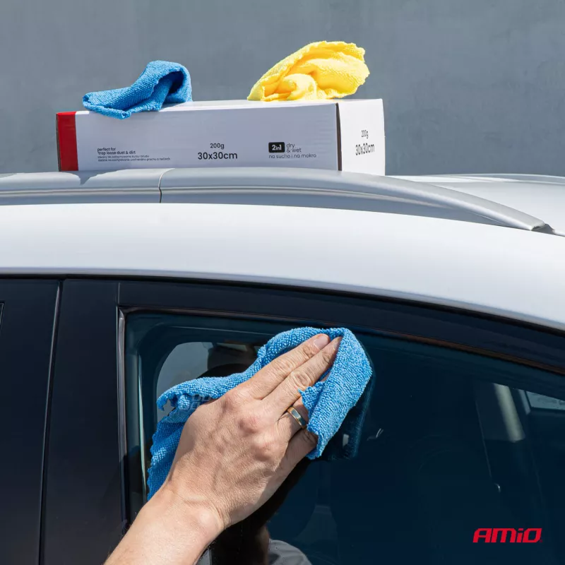 Microfibre pour laver, nettoyer les vitres et sécher la voiture 2 en 1 30x40 cm 2 pièces 630g - AMIO