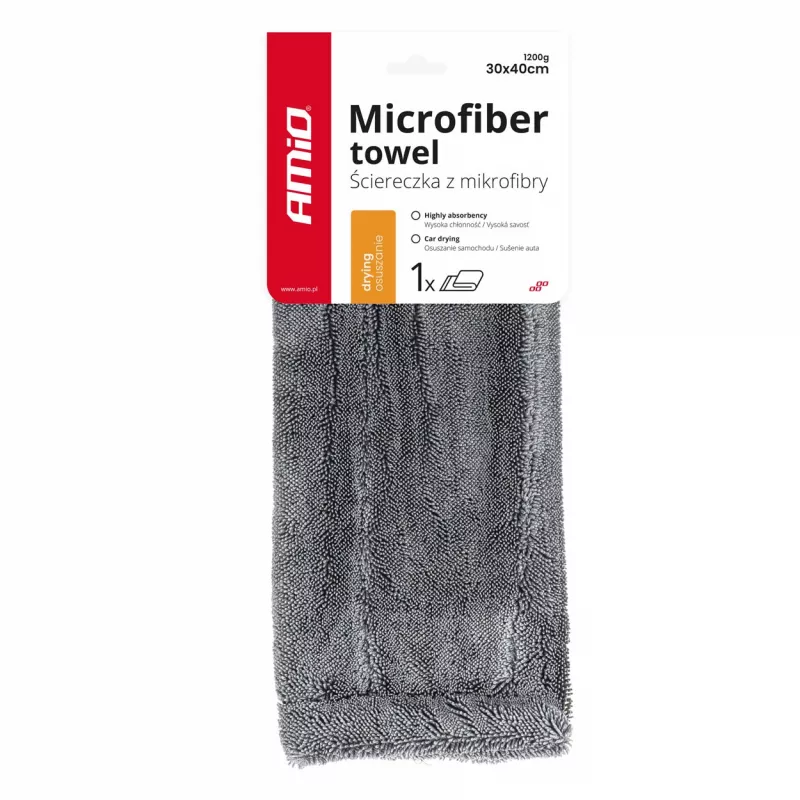 Microfibre pour le lavage, le nettoyage des vitres et le séchage de la voiture 2 en 1 60x40 cm AMIO
