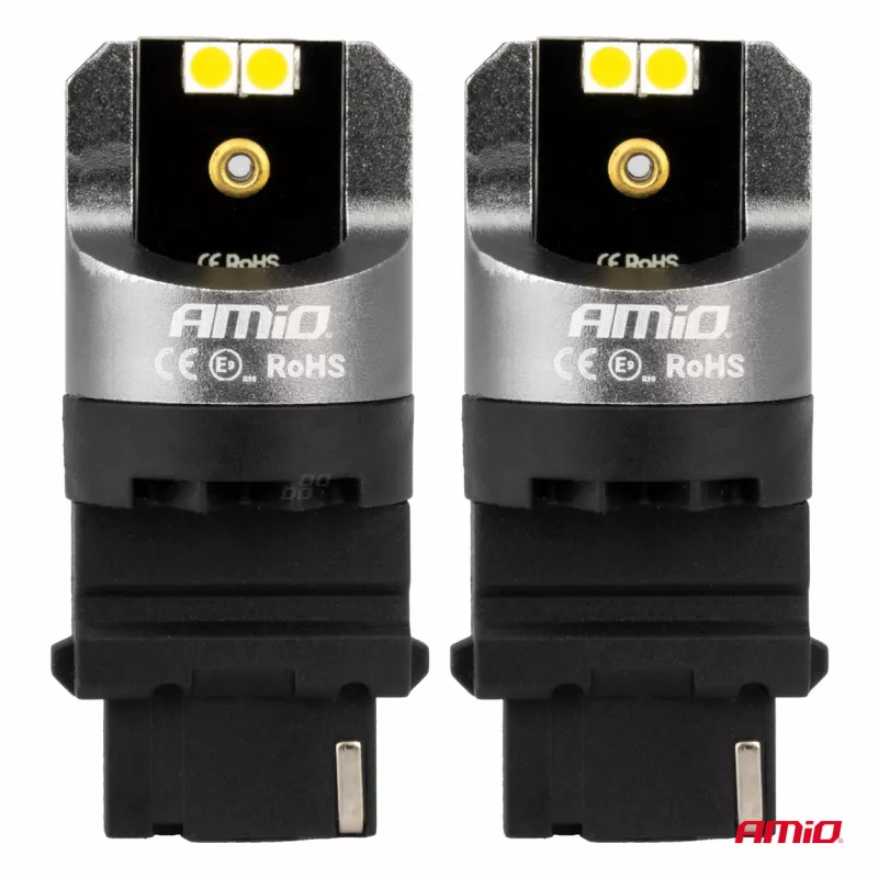 Les ampoules LED automobiles AMiO utilisent des diodes 7440 SMD (4 par ampoule) émettant une lumière blanche à 6000K sans scintillement
