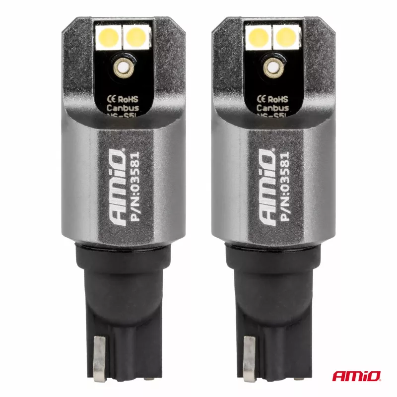 Les ampoules LED automobiles AMiO utilisent des diodes LED 3838 SMD (2 par ampoule) émettant une lumière blanche à 5500K sans scintillement