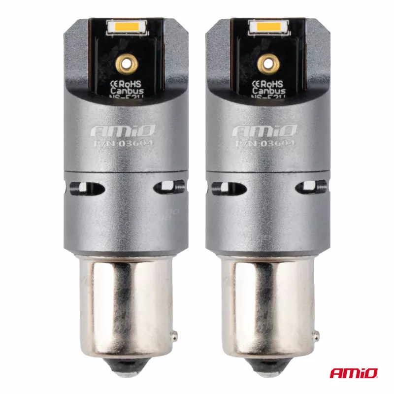 Les ampoules LED AMiO pour voitures utilisent des diodes LED 2x1860 SMD émettant une lumière orange-ambre sans scintillement