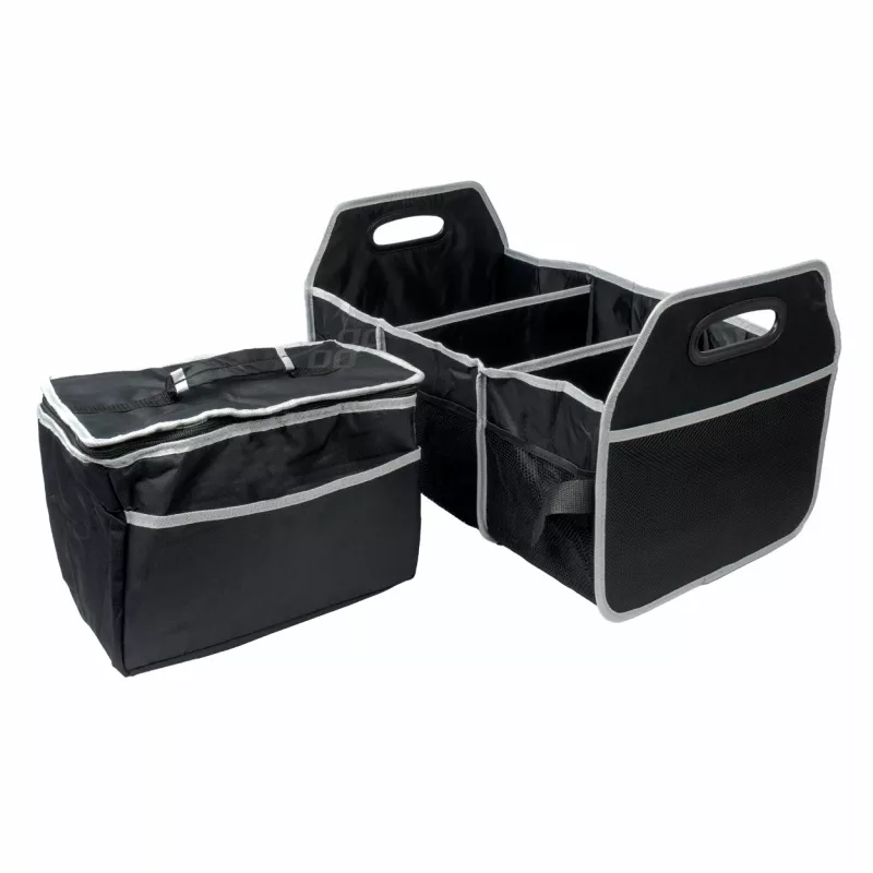 Grand organiseur pliable pour coffre de voiture avec 3 compartiments solides et sac thermo-isolant amovible