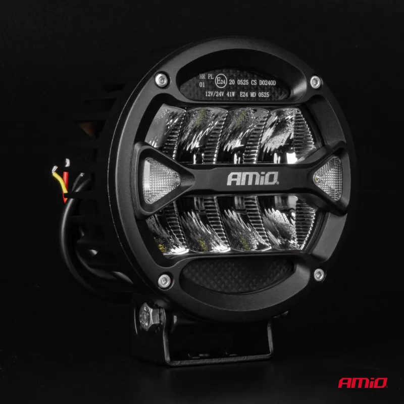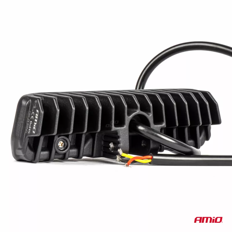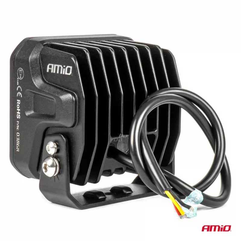 Les lampes de travail AMIO, alimentées en 9-36 V DC, offrent une puissance de 324W et une luminosité de 25920 lm avec une température de couleur de 6500K
