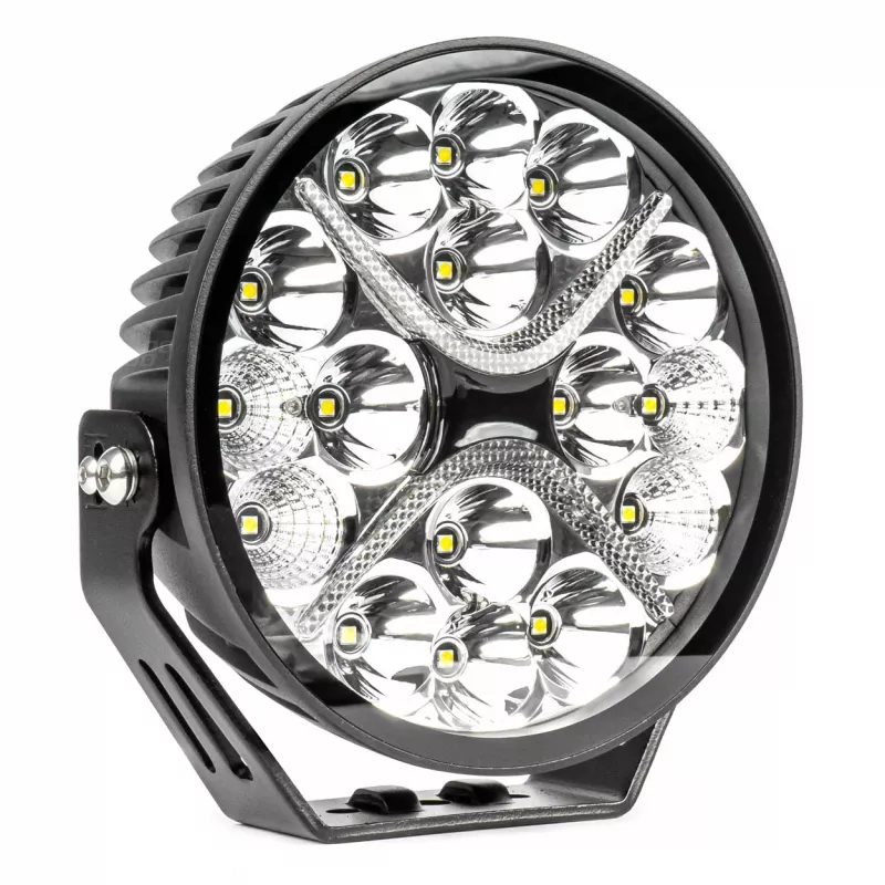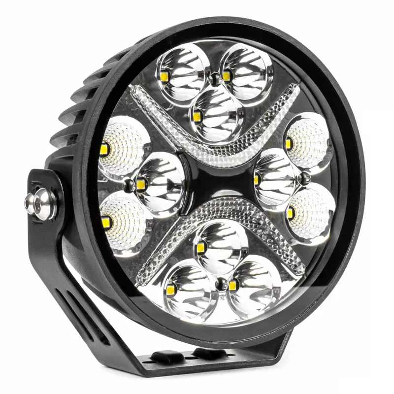 La lampe LED ronde de 50W, alimentée en 9-36V, offre une puissance lumineuse de 5500 lumens en feux de route et 3600 lumens en feux de croisement avec une température de couleur de 6000K