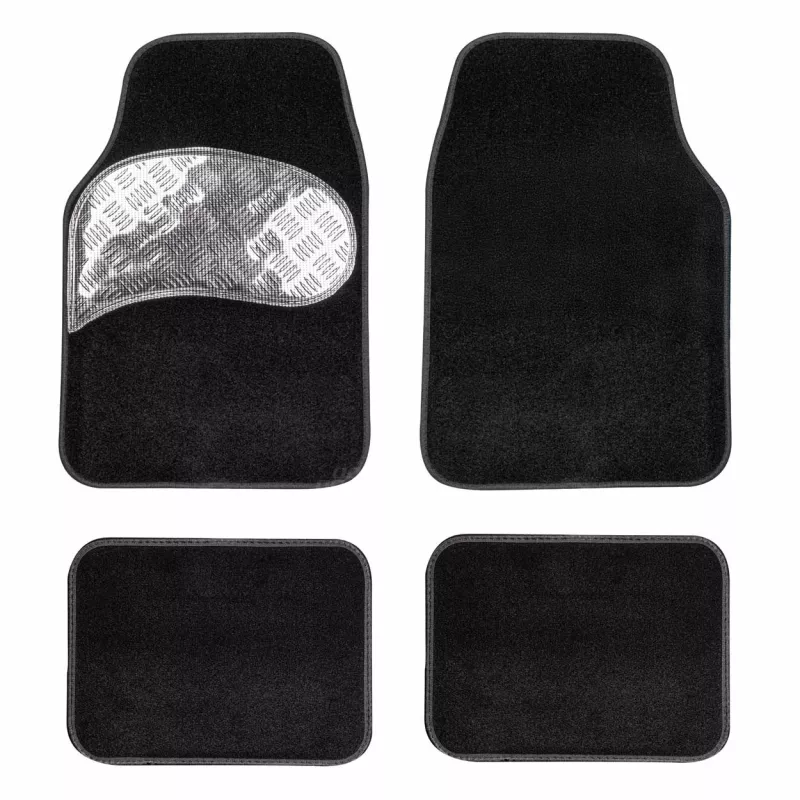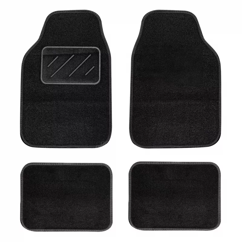 Le jeu universel de tapis textiles TCM-01 comprend 4 pièces (2 avant 73x49 cm, 2 arrière 38,5x47 cm) adaptées à la plupart des voitures particulières