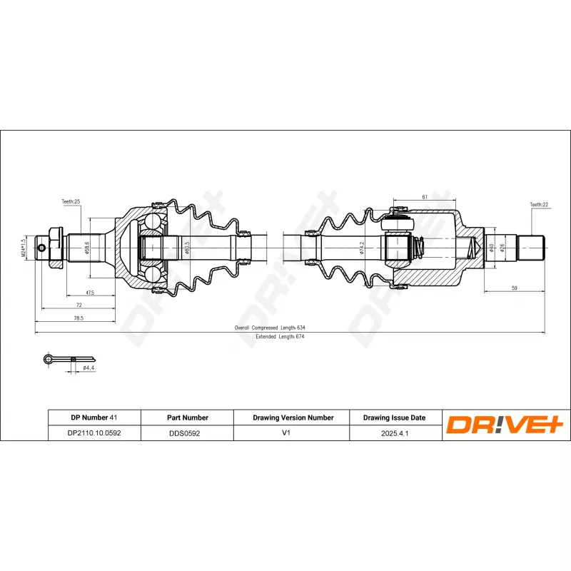 Diamètre de la rotule du côté boîte de vitesses : 74,2 mm