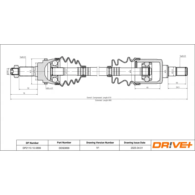 Arbre de transmission avant droit (à l'unité) Dr!ve+