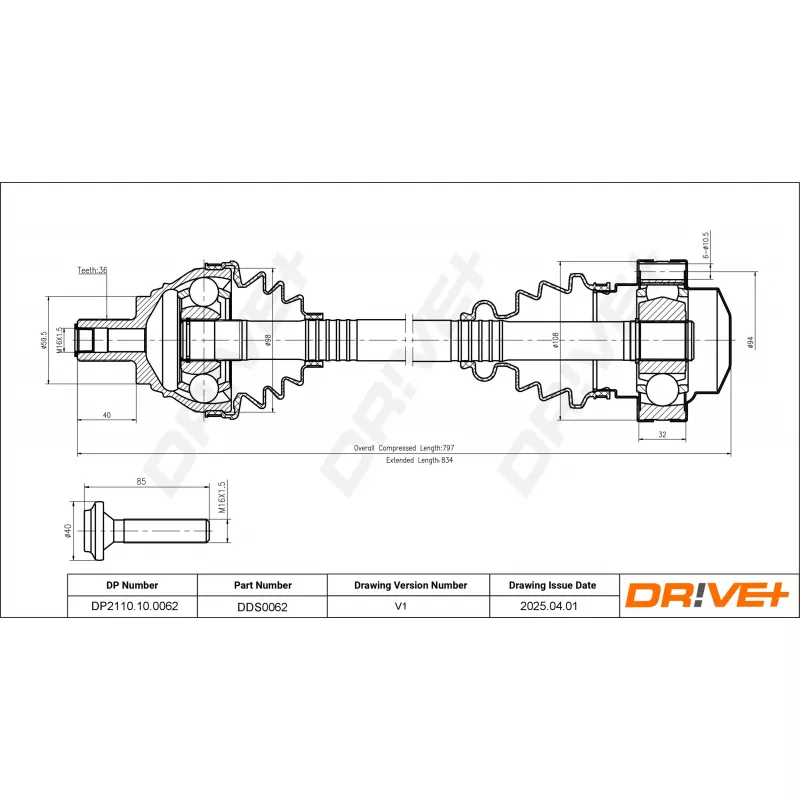 Diamètre de la rotule du côté boîte de vitesses : 108 mm