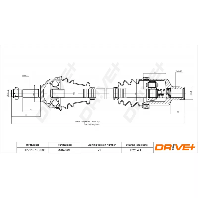 Diamètre de la rotule du côté boîte de vitesses : 81 mm