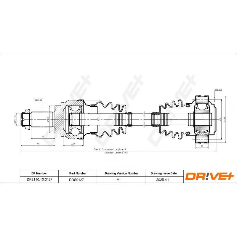 Longueur min. : 617 mm