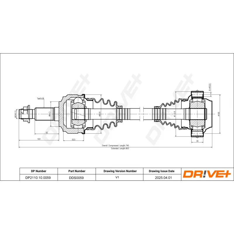 Diamètre de la rotule côté roue : 103 mm