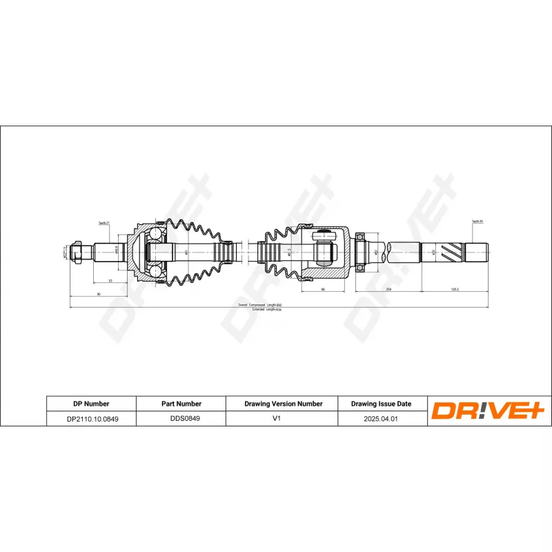 Diamètre de la rotule du côté boîte de vitesses : 81,5 mm