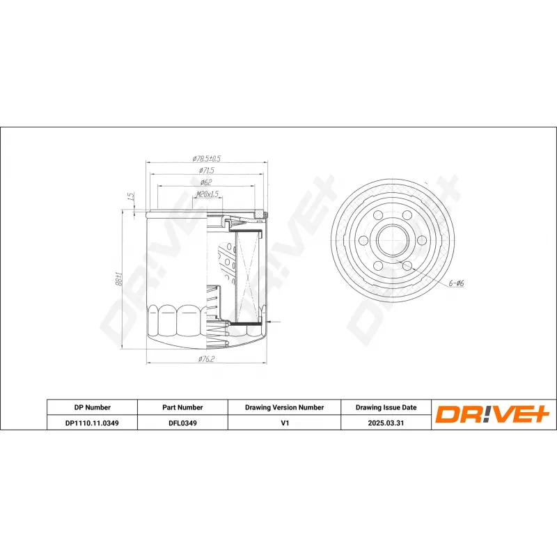 Filetage : M20X1.5-6H