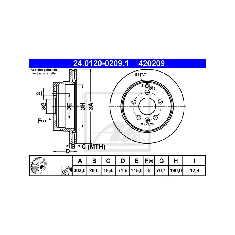 Épaisseur du disque de frein : 20,0 mm