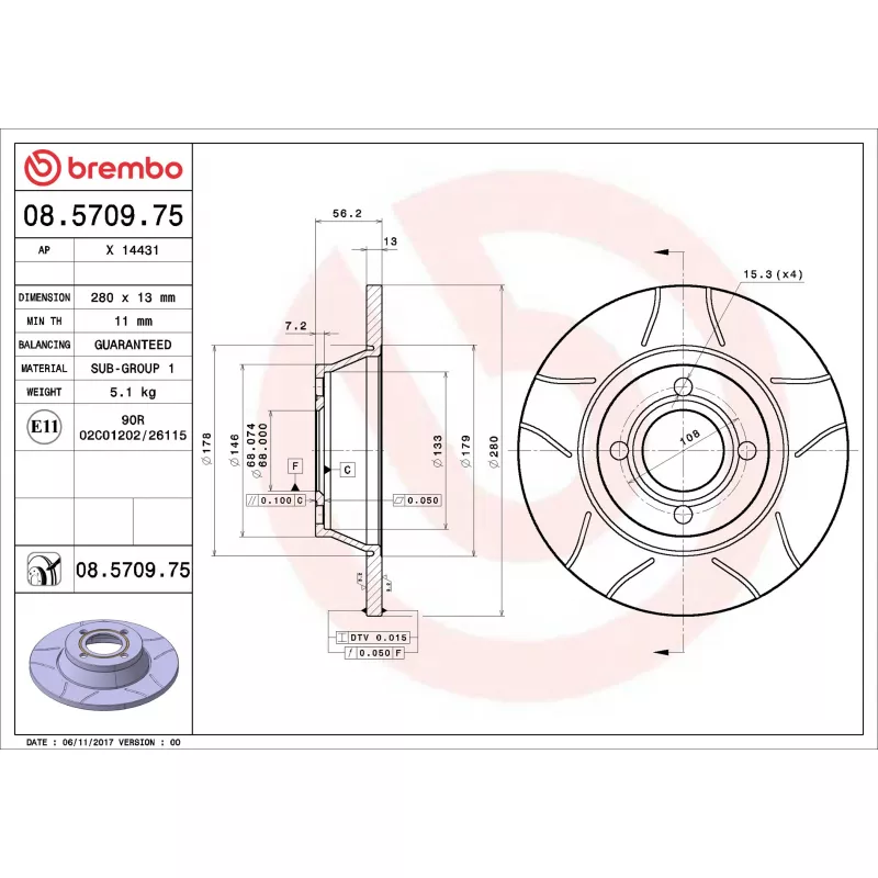 Diamètre extérieur : 280,0 mm