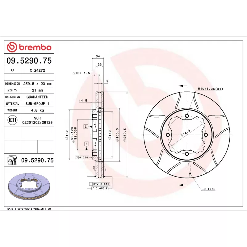 Marque de conformité : ECE R90 APPROVED