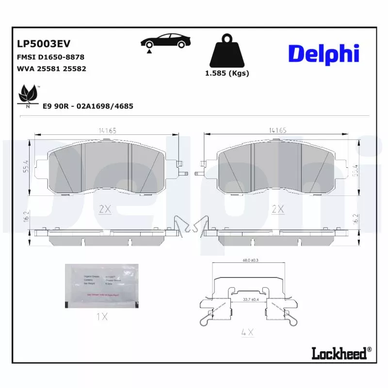 Jeu de 4 plaquettes de frein avant DELPHI