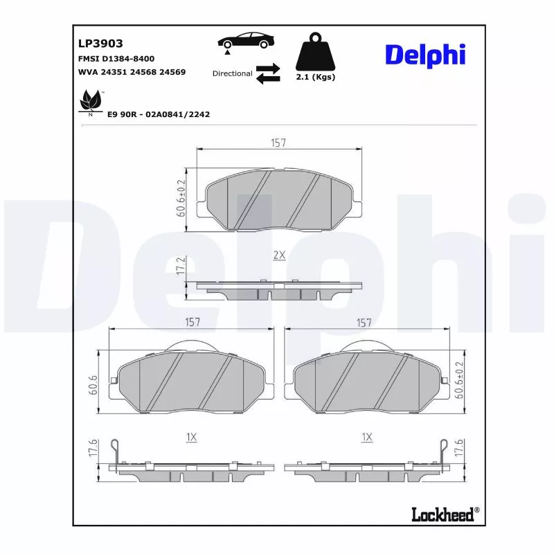 Jeu de 4 plaquettes de frein avant DELPHI