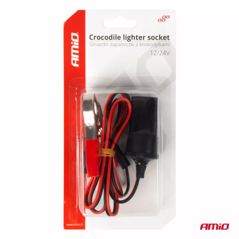 Adaptateur de prise allume-cigare avec sortie pour pinces crocodiles 12V 24V 100cm - AMIO - 03804