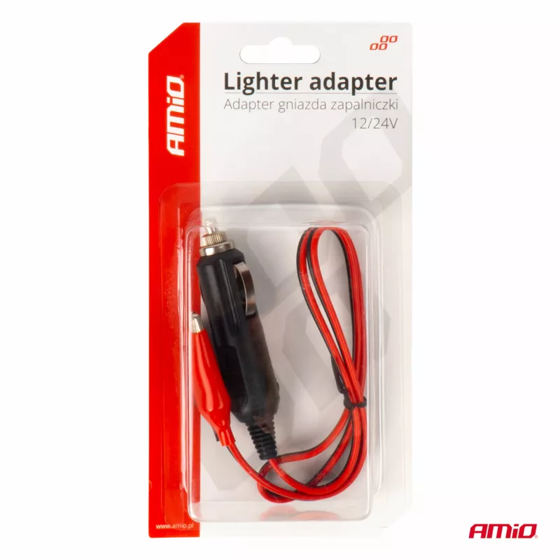 Adaptateur de prise allume-cigare avec sortie pour pinces crocodiles 12V 24V 60cm - AMIO - 03802