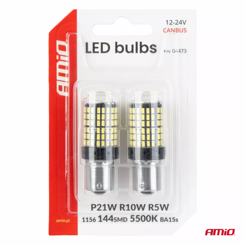 Ampoules LED CANBUS BA15S P21W R10W R5W 600LM 144SMD blanches 12V 24V - AMIO - 04473