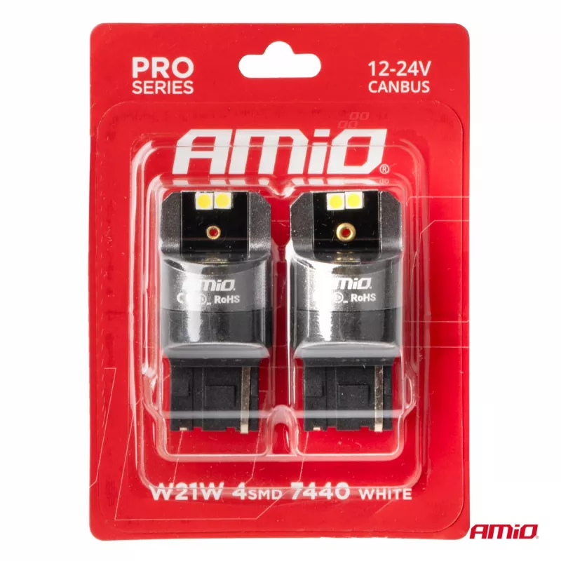 Ampoules LED CANBUS série PRO 7440 W21W 4x3030 SMD Blanc 12V 24V - AMIO - 03589