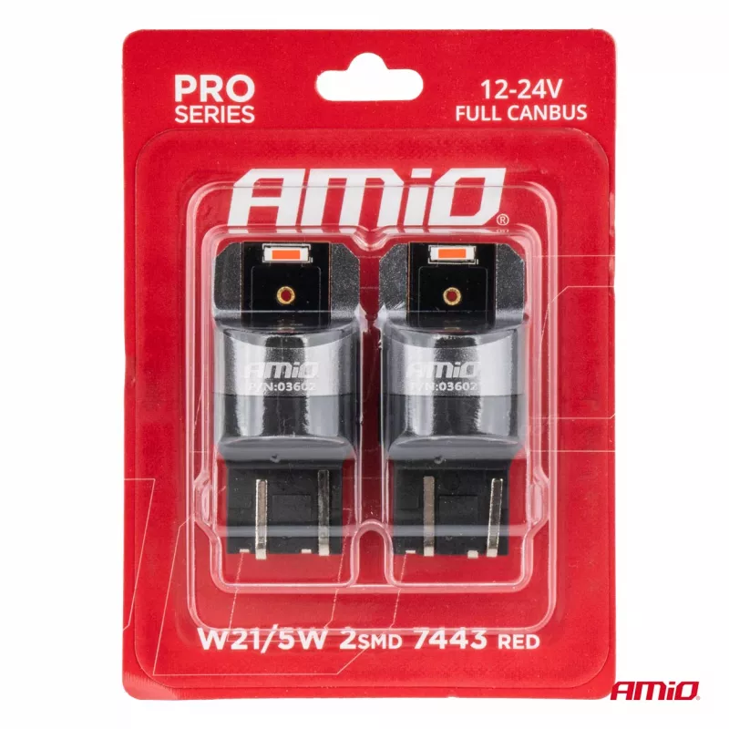 Ampoules LED FULL CANBUS PRO W21/5W 2x1860 SMD rouges 12V 24V - AMIO - 03602