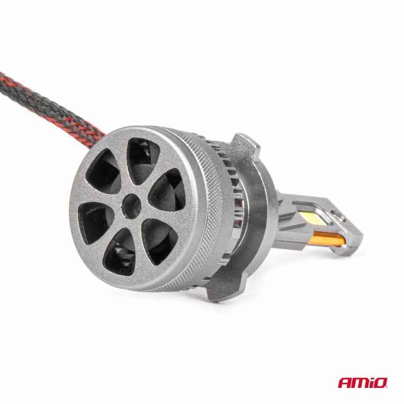 Les ampoules LED AMiO série HP FULL CANBUS offrent une lumière blanche 6500K très brillante (4500 lm, +400% par rapport aux halogènes) avec une ligne de coupure précise, adaptées aux phares à lentilles et réflecteurs