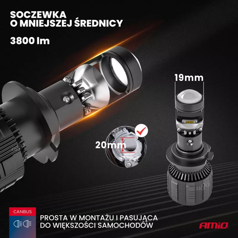 Ampoules LED pour voiture série PL Lentille H7 lentille 6000K Canbus - AMIO - 03668