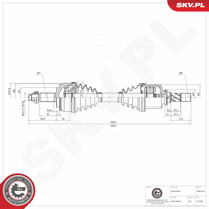 Arbre de transmission ESEN SKV - 40SKV014