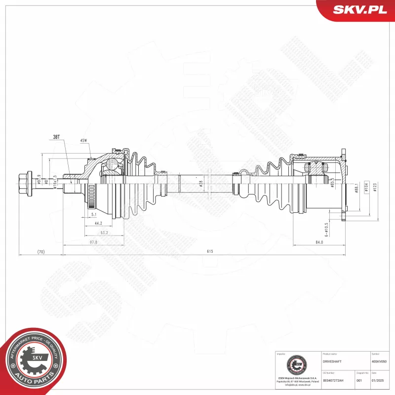 Arbre de transmission avant droit (à l'unité) ESEN SKV - 40SKV050
