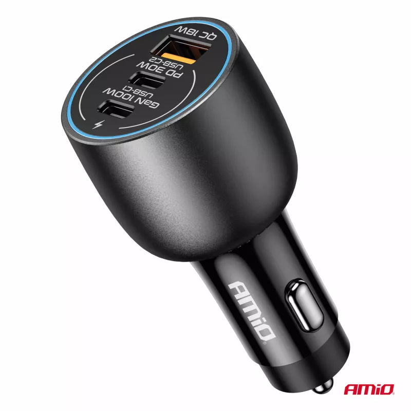 Chargeur de voiture 2x USB-C + USB-A 12V 24V 100W - AMIO - 04371