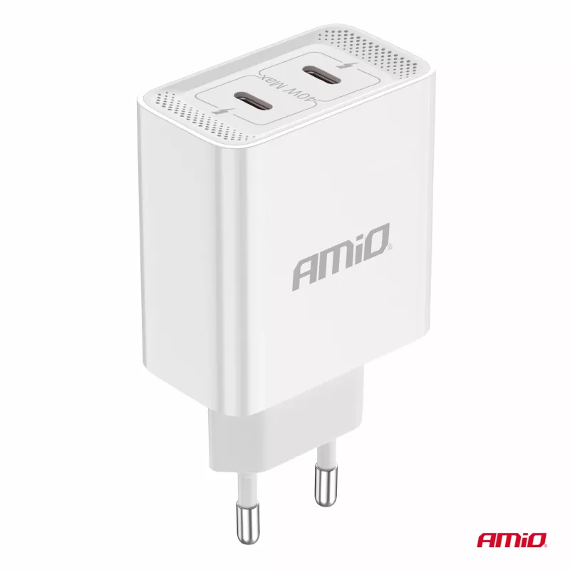 Chargeur secteur 230V 2x USB-C 40W - AMIO - 03892