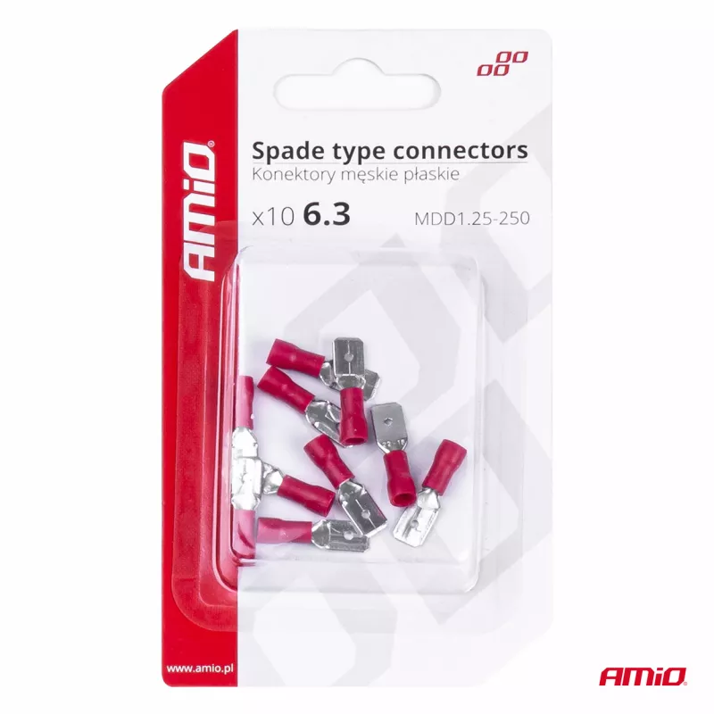 Connecteurs isolés mâles plats 6,3 mm 0,5-1,5 mm² 10A 10 pcs AMIO - 03066