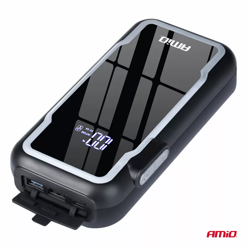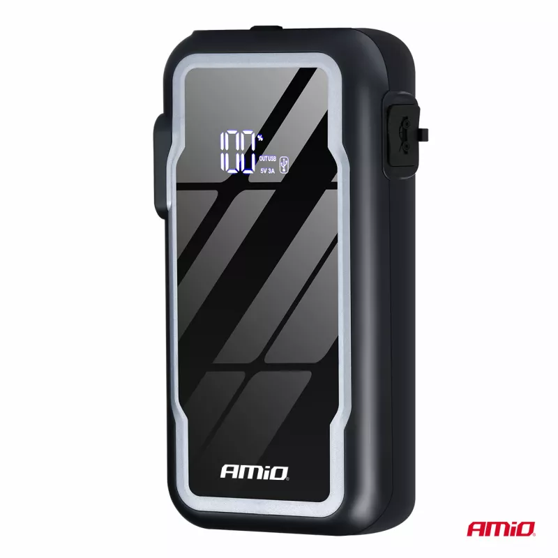L'appareil de démarrage AMiO 3 en 1 12Ah est un dispositif compact et puissant combinant booster de démarrage, powerbank et lampe torche LED
