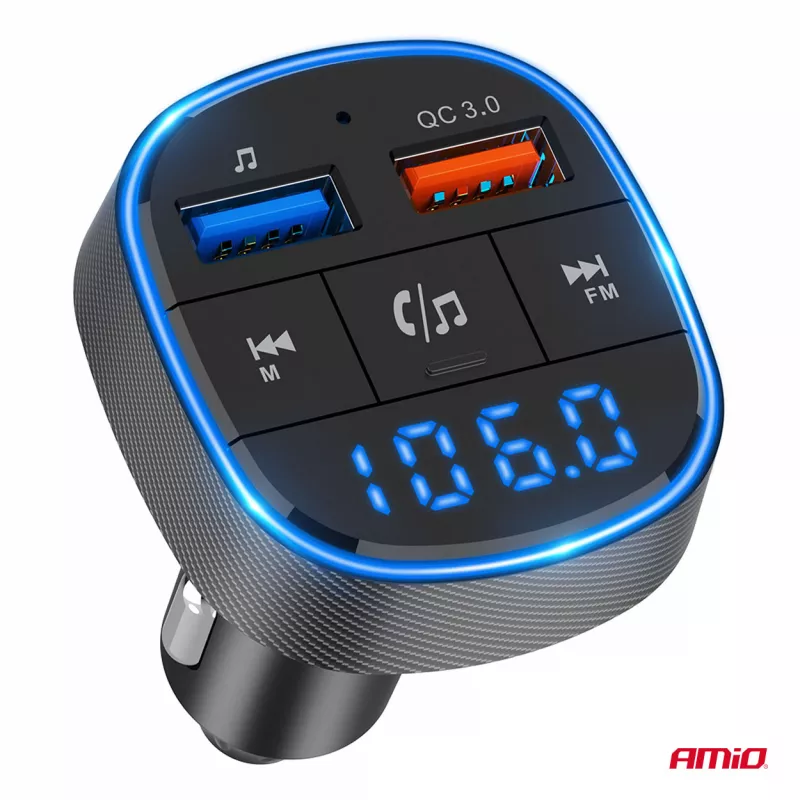 Émetteur FM voiture 2×USB-A 12V 24V - AMIO - 04648