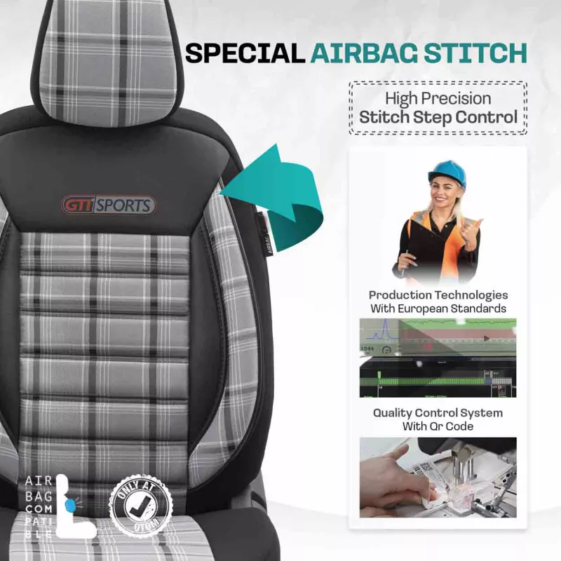 Couture certifiée AIRBAG compatible avec sièges équipés de coussins gonflables latéraux, testée et certifiée