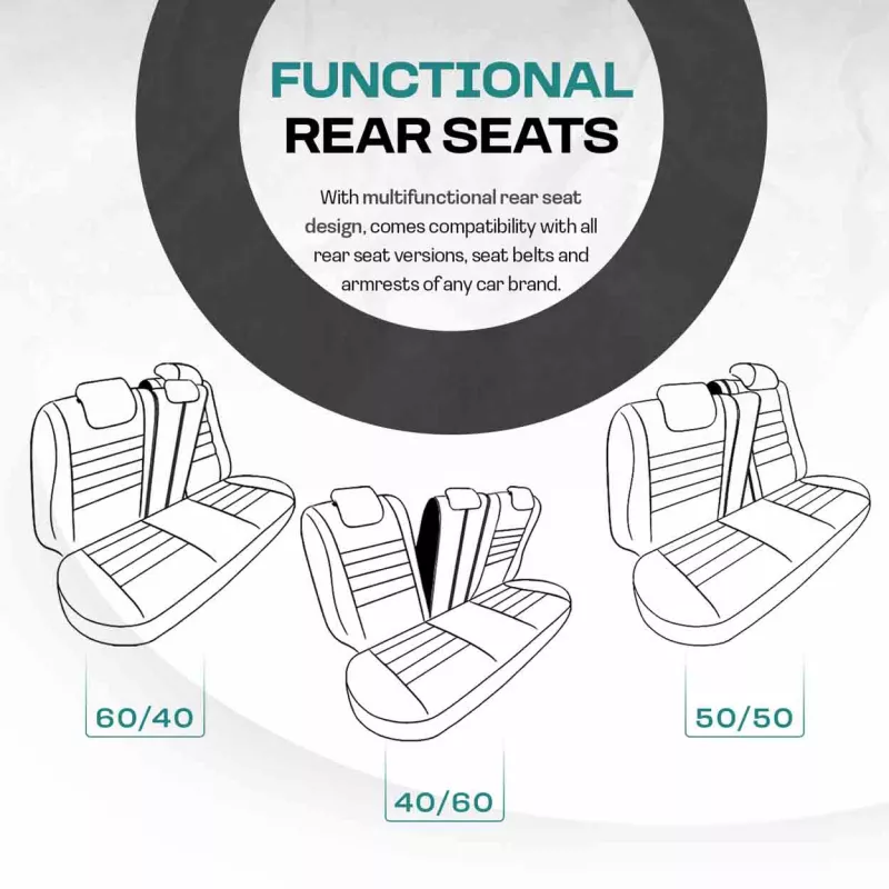 Fermetures éclair sur banquette arrière pour compatibilité avec banquettes divisées ou non, dossiers rabattables