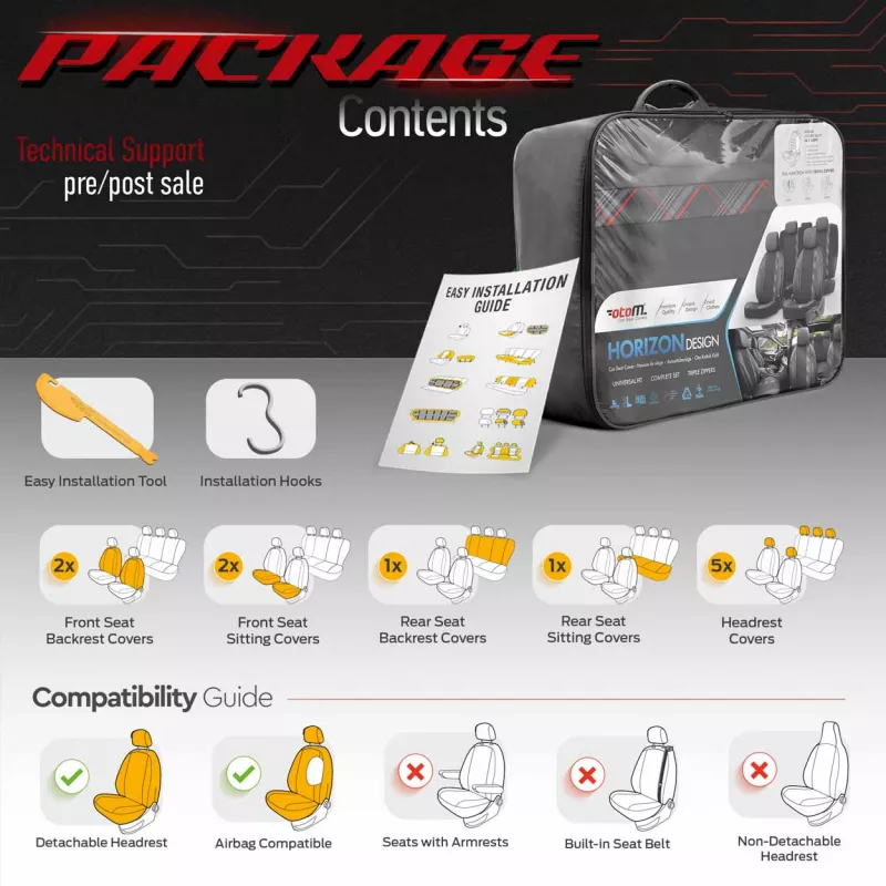Ensemble de housses pour sièges de voiture OTOM HORIZON 1801 ROUGE 3-ZIP AMIO - OT86743