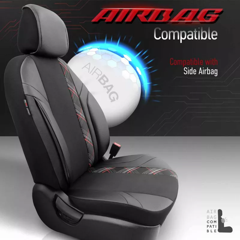 Couture certifiée AIRBAG compatible avec airbags latéraux, assurant sécurité et fonctionnalité sans interférer avec leur déploiement
