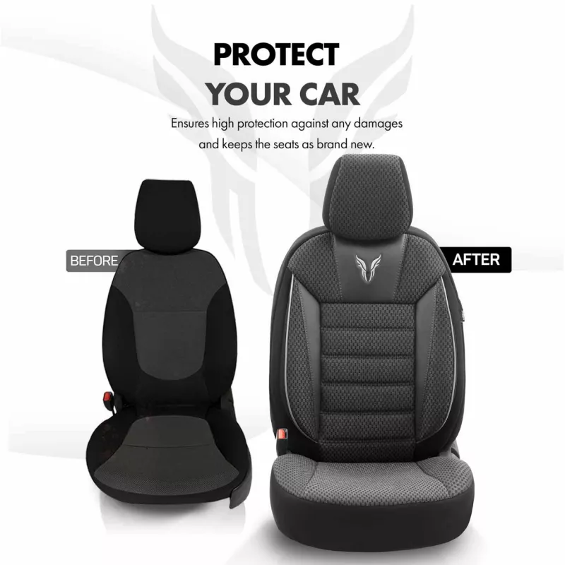 Housse universelle couvrant entièrement les sièges, protégeant contre salissures et usure, facile à nettoyer, sans découpes pour ceintures ou appuie-têtes arrière (à découper après montage)