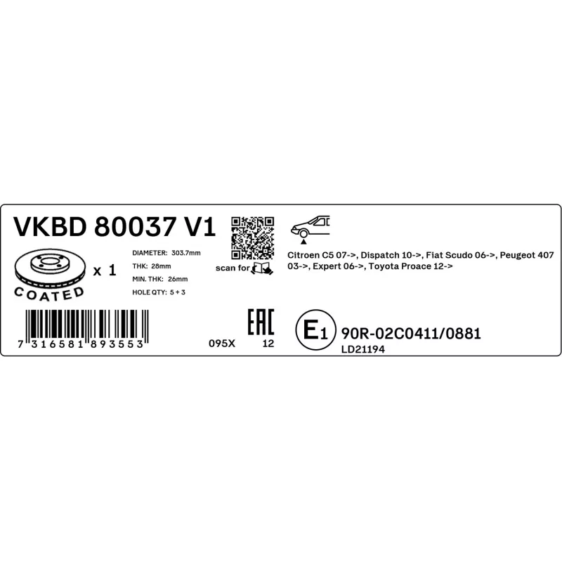 Jeu de 2 disques de frein avant SKF - VKBD 80037 V1