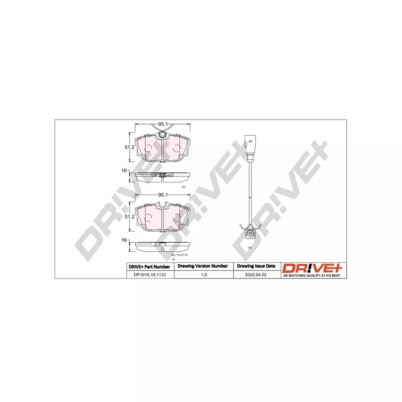 Jeu de 4 plaquettes de frein arrière Dr!ve+ - DP1010.10.1133
