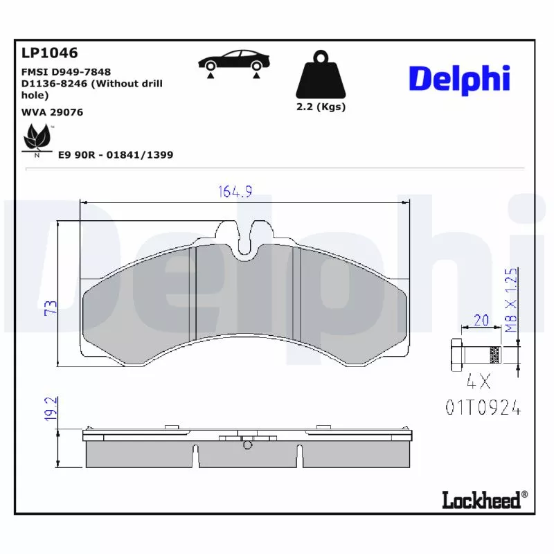 Jeu de 4 plaquettes de frein arrière DELPHI - LP1046