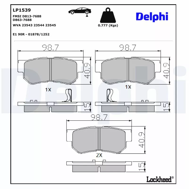 Jeu de 4 plaquettes de frein arrière DELPHI - LP1539