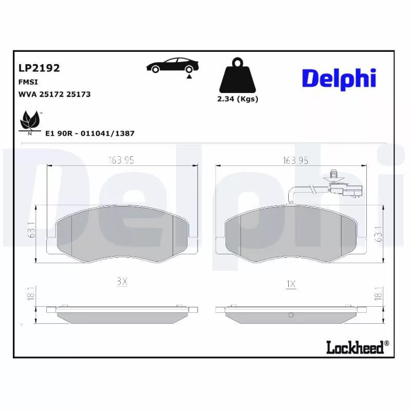 Jeu de 4 plaquettes de frein arrière DELPHI - LP2192